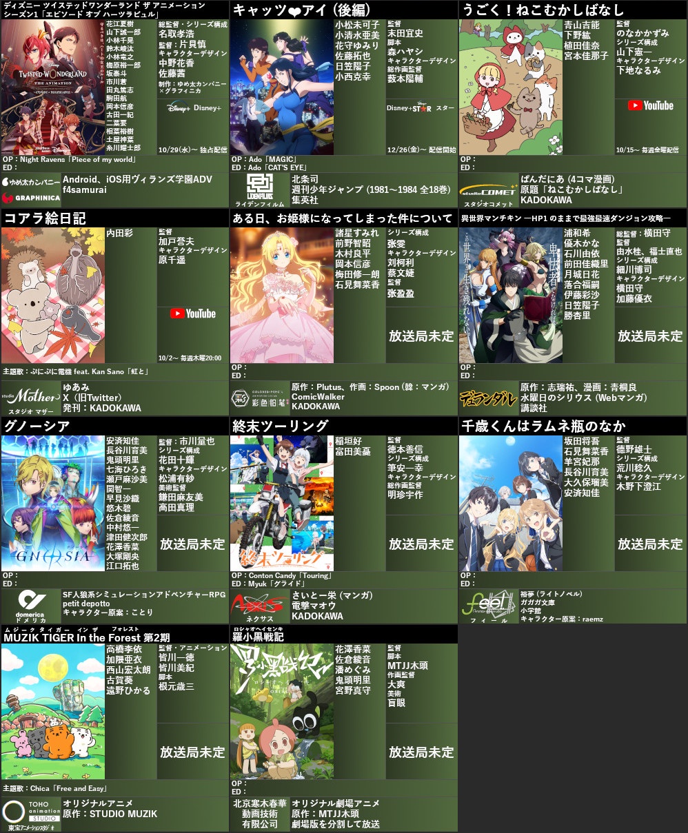 【画像】来期アニメが出揃ったわけだが